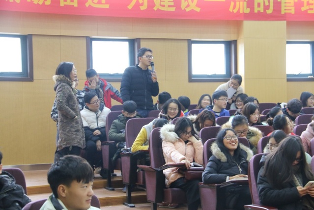 “听君一席话,胜读十年书”,三位企业高管声情并茂的发言让同学们获益良多,同时也引发了同学们对相关问题的思考和讨论。同学们积极提出问题,与企业家共同探讨了人力资源中招聘与甄选、培训与开发,薪酬设计的相关知识,将理论与企业中的实际相结合,与此同时三位企业家解答了大家较为关注的就业问题,分享了他们在实际工作中的感受,也给大学生在就业及日后的职场发展提出了宝贵的建议。