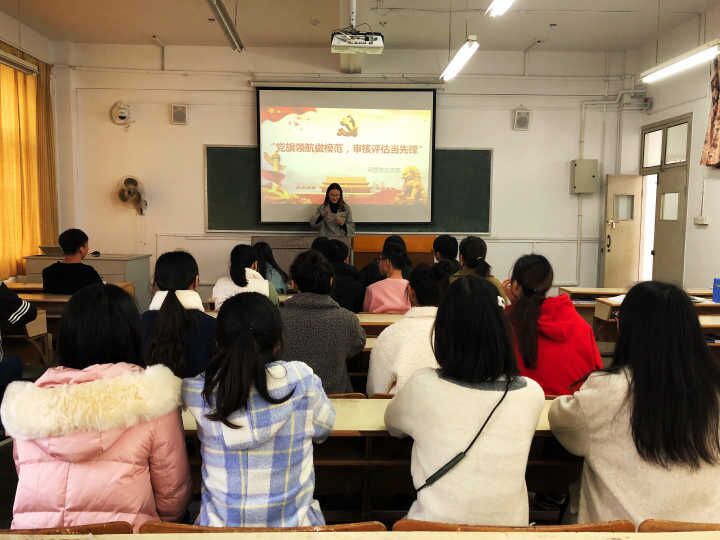 12月份学校将迎来本科教学工作审核评估,为推动学校本科教学工作审核评估的顺利进行,进一步发挥基层党组织的战斗堡垒作用和党员先锋模范作用,1125日上午,管理工程学院经营学生支部在2J203开展了“党旗领航做模范 审核评估当先锋”主题党日活动。经营支部的同学们参加了活动。