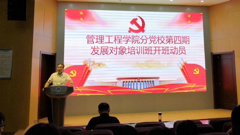 9月25日下午,管理工程学院分党校第四期发展对象培训班在C座7楼报告厅开班。学院党委书记邬海量、组织员朱文明、班主任周向阳、90名发展对象参加了开班动员会。