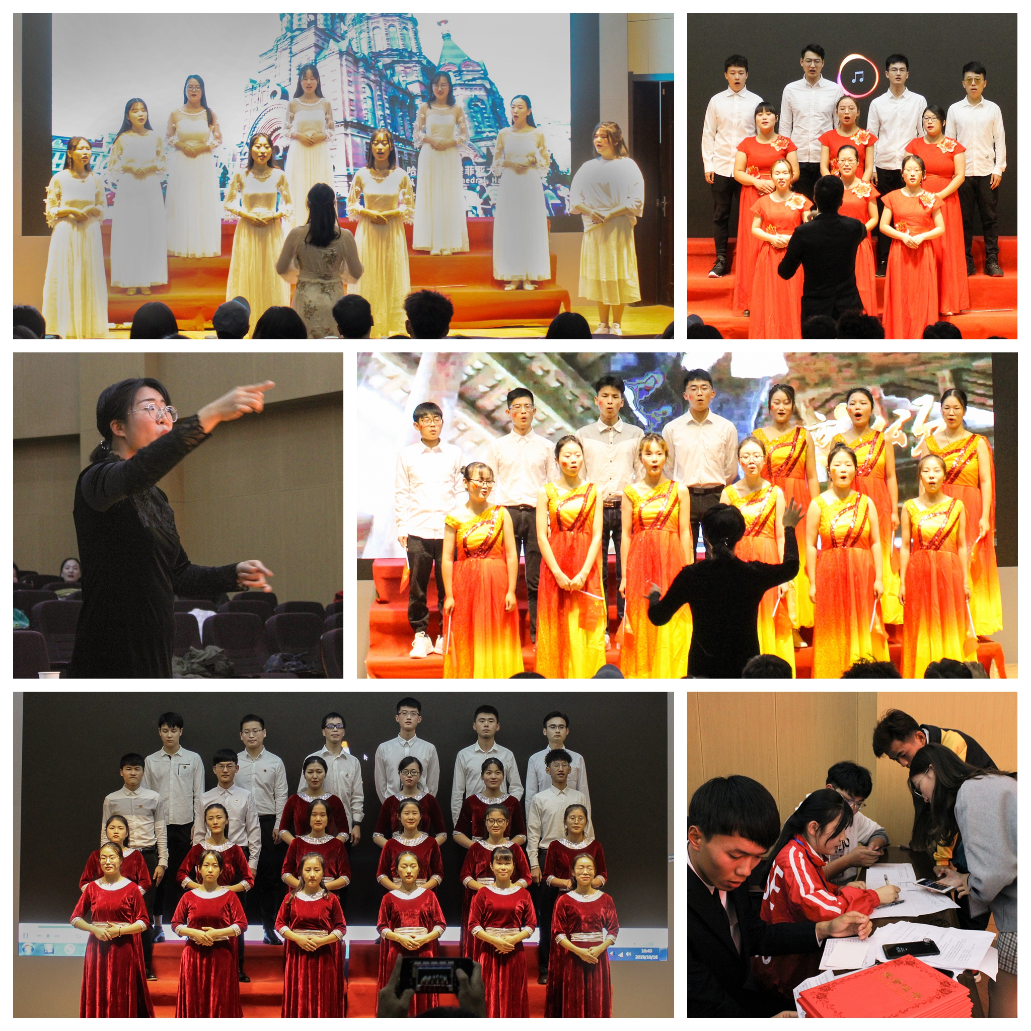 为庆祝新中国成立70周年,在“不忘初心、牢记使命”主题教育中深入学习贯彻习近平新时代中国特色社会主义思想,广泛开展爱国主义和形势政策教育,让全体党员进一步了解新中国成立以来特别是改革开放以来党和国家事业发展的伟大成就和宝贵经验,切实做到知史爱党、知史爱国,自觉践行初心和使命。管理工程学院组织以各学生党支部和院分党校第四期发展对象培训班为单位开展合唱比赛。经过两次集体排练,正式比赛于10月16日下午在C座7楼报告厅举行,学院党委书记邬海量、副书记程繁,艺术指导黄小顺老师担任评委。
