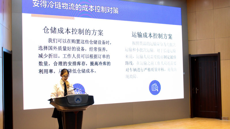 本次比赛吸引了来自计算机与信息学院、数理学院、机械与汽车工程学院、电气工程学院的学生积极参与,采用多专业组合,团队协作的形式组队参加比赛,初赛阶段有二十多只队伍报名,经过专家评审,12支队伍进入决赛阶段。决赛采用现场展示加答辩两个环节,每支队伍派出1-2名队员上台通过PPT演讲的方式来展示团队作品,随后进行评委提问环节,所有队员上台进行答辩。这次比赛中各队所展示的方案均具有一定创新性和可行性,他们有的是以物流公司物流优化设计为主体思想,提出“面向优里公司的物流流程优化设计方案”;有的是以冷链物流、电子商务物流、绿色物流进行优化设计为题,提出了“面对安得智联的冷链物流、电子商务物流、绿色物流的优化设计方案”。有的是以冷链物流平台的生鲜农产品配送为题,提出了“基于安徽新世界冷链物流平台的芜湖市生鲜农产品配送网络设计”。评委老师就各团队方案设计提出了问题,并对不足之处给出修改意见,帮助同学们进一步优化和改善作品。
