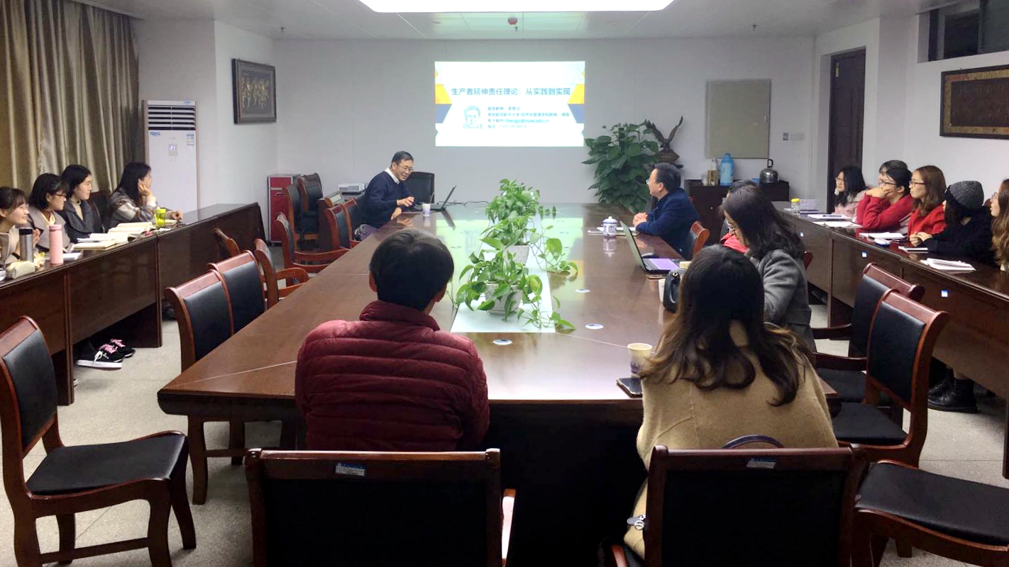 李帮义教授长期从事供应链管理、循环经济等相关研究,主持国家社科基金、教育部人文社科项目等国家级及省部级项目多项,先后在《Transportation Research Part E》、《International Journal of Production Research》、《Journal of Cleaner Production》、《管理科学学报》等中外文核心期刊发表60多篇论文。此次报告会,李帮义以“供应链视角下生产者责任延伸的实现机制研究”为题,从生产者延伸责任理论(EPR)、EPR的立法实践与绩效产出、EPR系统的特征以及EPR未来的研究前沿问题四个方向进行了深入讲解。李帮义教授引用了丰富的案例,从全球面临的环境和资源等问题出发,将EPR理论的起源及其立法实现策略与绩效进行了详细地阐述。随后,从系统的复杂性到不确定性的角度,李帮义教授分析了EPR系统的特征,并由此引出了关于EPR几个研究方向。