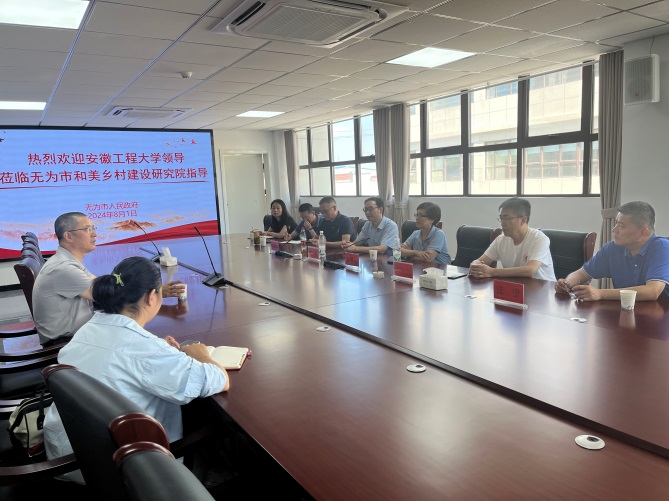 为进一步推进无为市和美乡村建设项目,8月1日上午,校党委副书记苏国红、人文学院党委书记刘一、院长刘军、副院长邹俊及相关专业教师一行赴无为市和美乡村建设研究院调研交流。